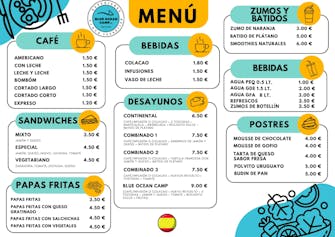 Nos encanta cocinar y nuestro compromiso es ofrecer a nuestros huéspedes comidas artesanales con productos frescos y de temporada procedentes de la agricultura local. Nuestro Bar-Restaurante Blue Ocean Camp sirve una gran variedad de platos para todos los gustos. Nos adaptamos a dietas vegetarianas, sin gluten, etc.